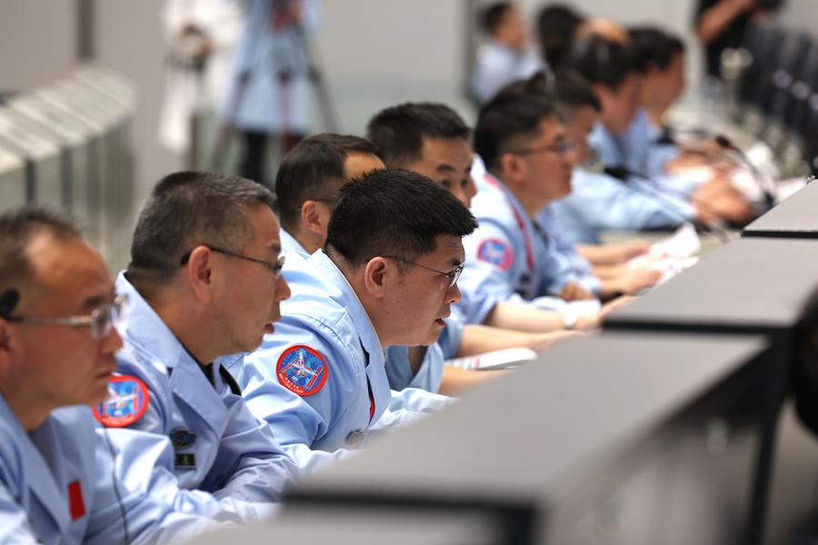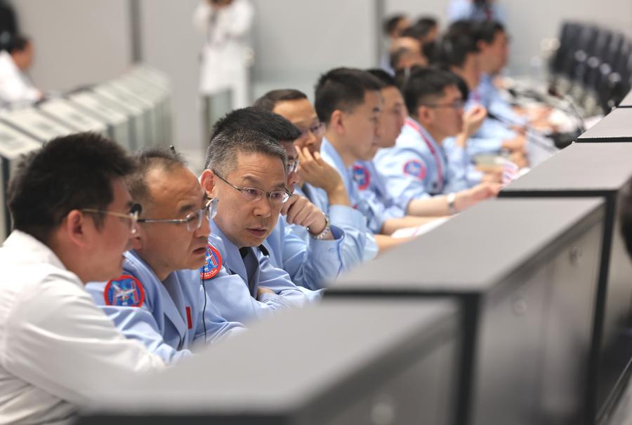 Technical personnel work at the Beijing Aerospace Control Center (BACC) in Beijing, capital of China, June 6, 2024. (Xinhua/Jin Liwang)