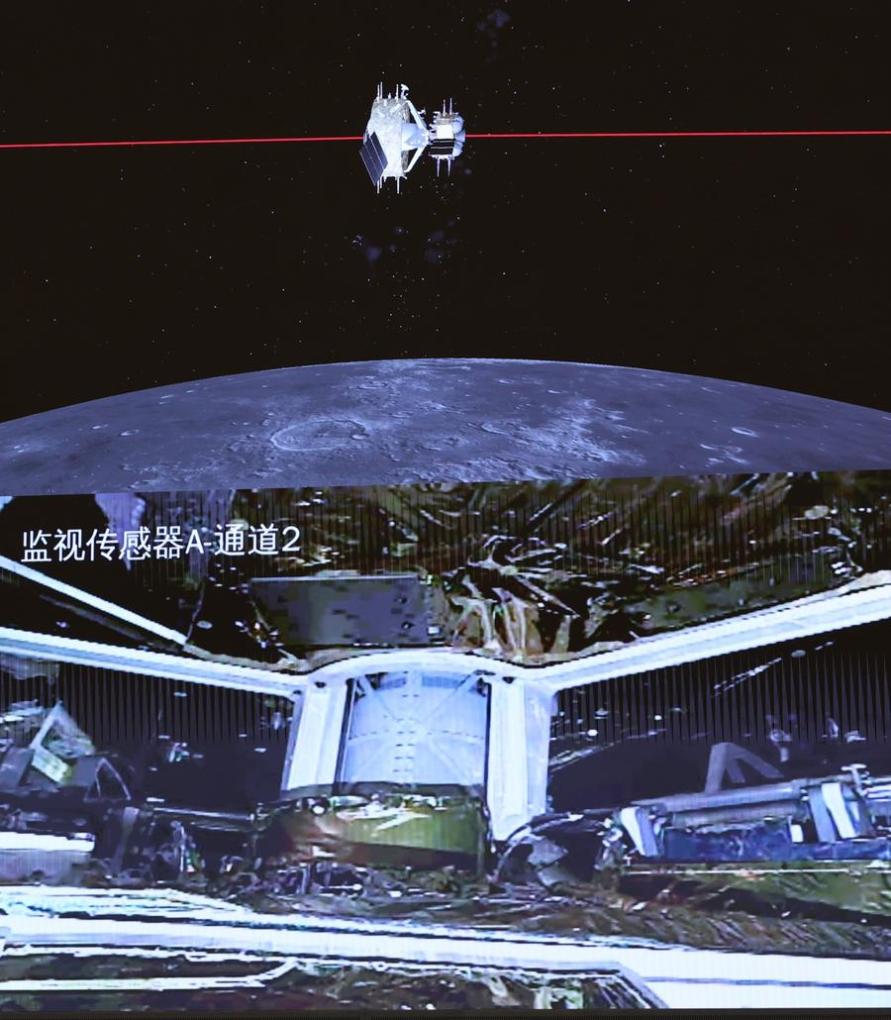 After the ascender took off from the far side of the moon on Tuesday morning and entered lunar orbit, it made four orbital adjustments. When the ascender was about 50 km in front of and 10 km above the orbiter-returner combination, the combination gradually approached the ascender through short-range autonomous control and captured it with holding claws.