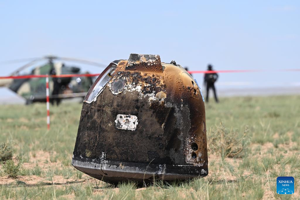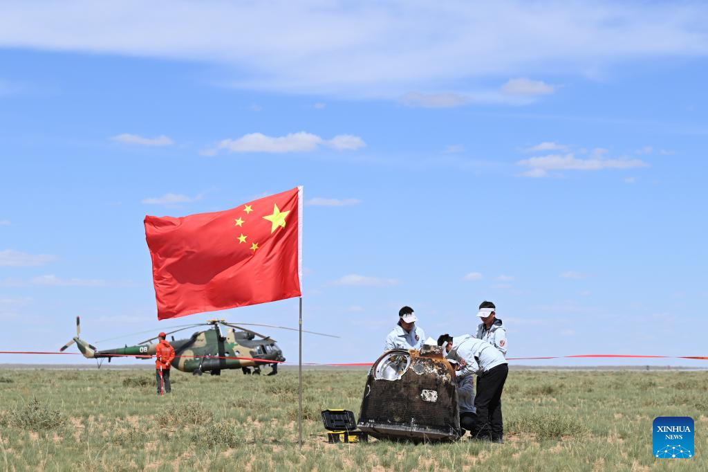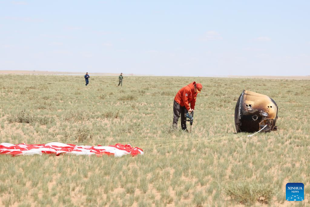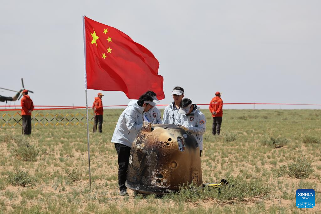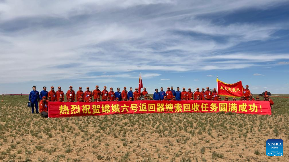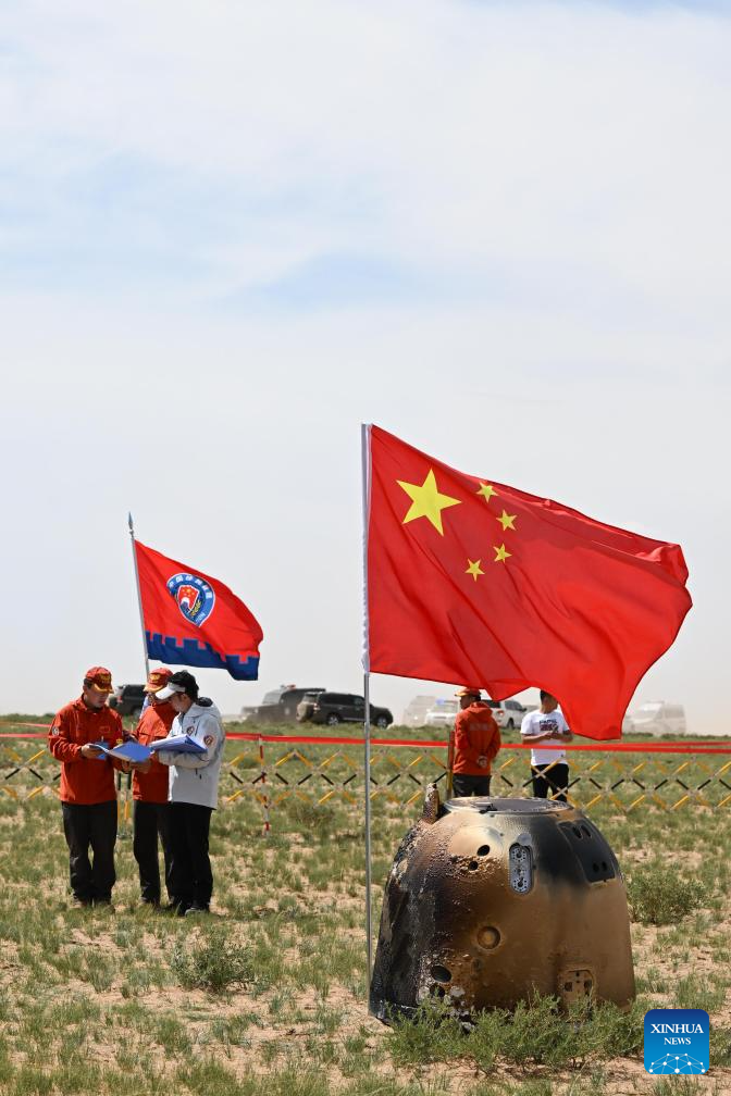 BEIJING, June 25 (Xinhua) -- The returner of the Chang'e-6 probe touched down on Earth on Tuesday, bringing back the world's first samples collected from the moon's far side, and marking another remarkable achievement in China's space exploration endeavors.