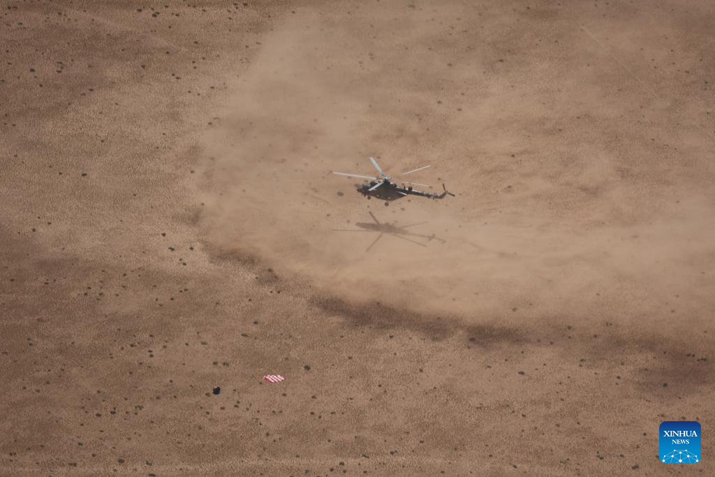 The return capsule landed precisely in the designated area in Siziwang Banner, north China's Inner Mongolia Autonomous Region at 2:07 p.m. (Beijing Time), operating normally, and the mission is a complete success, according to the China National Space Administration (CNSA).