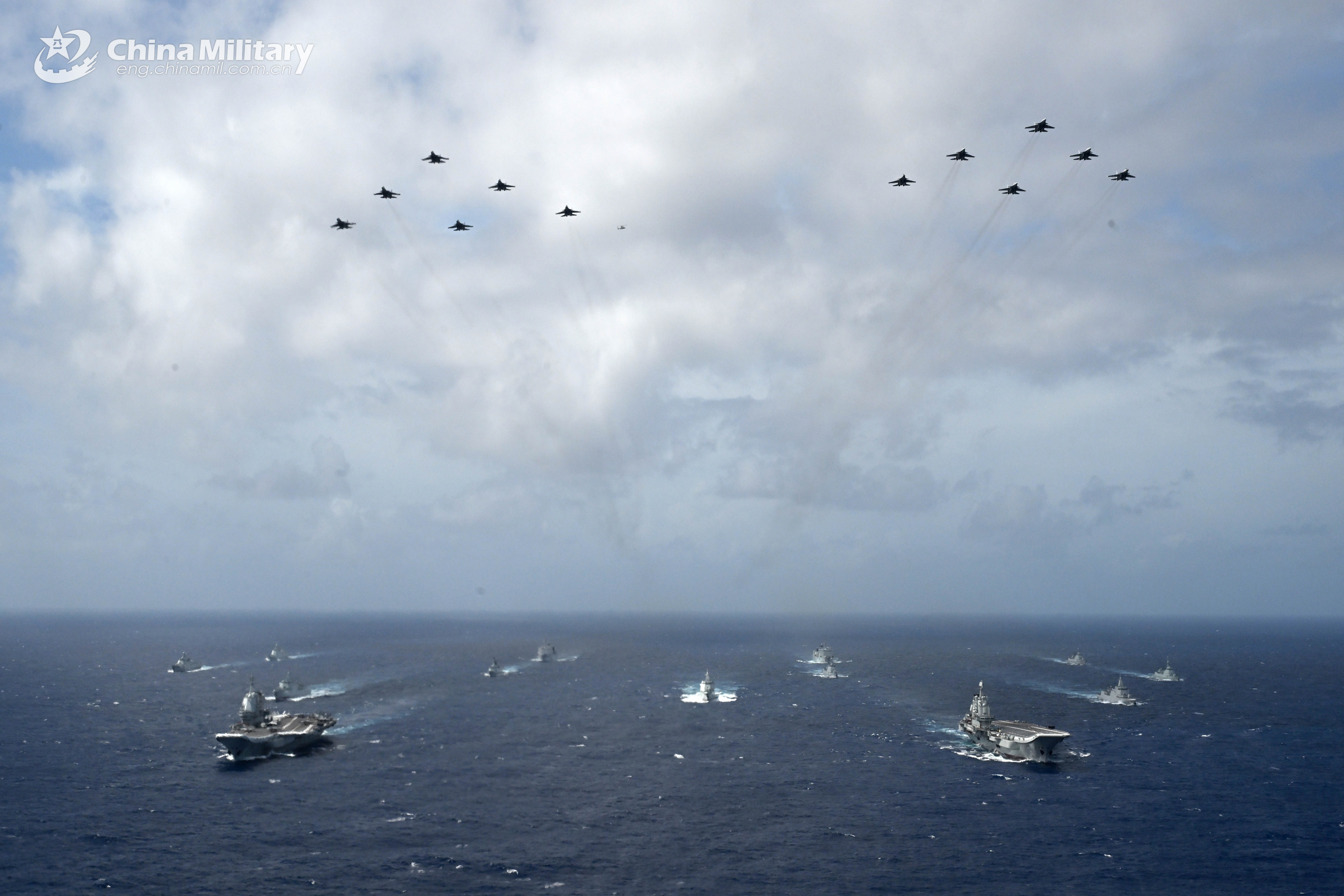 Aircraft carriers Liaoning and Shandong of the Chinese People's Liberation Army (PLA) Navy carry out a dual-aircraft-carrier formation exercise for the first time in the South China Sea in late October, 2024.