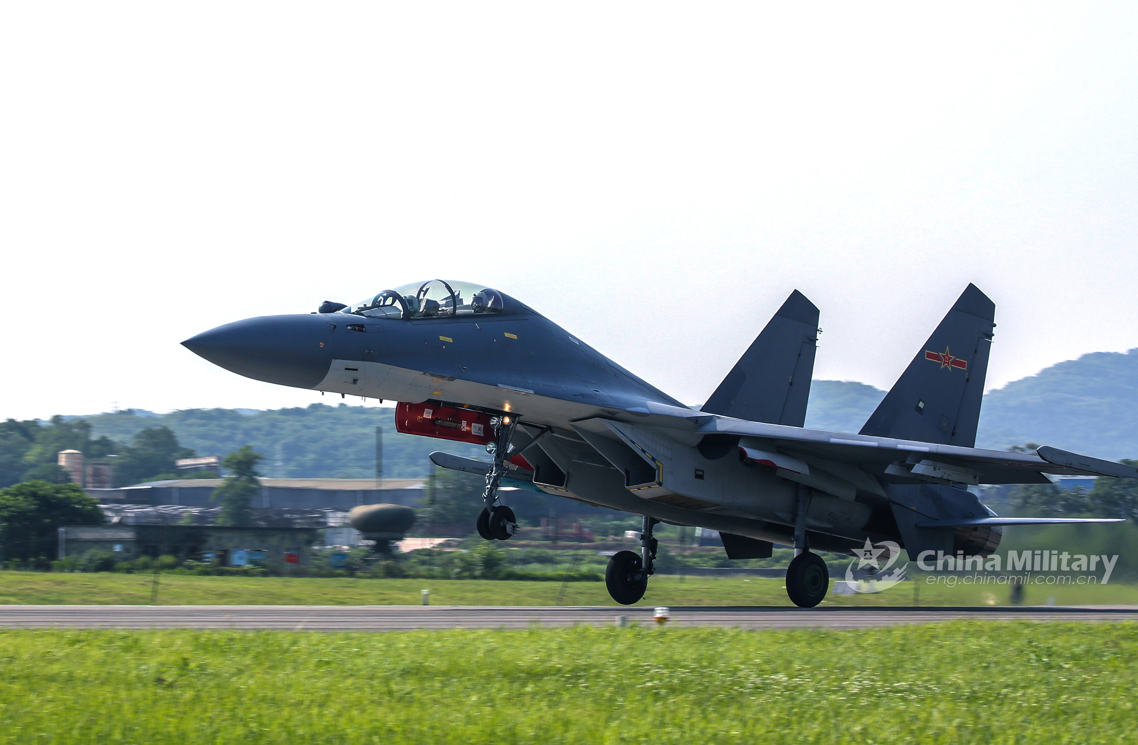 A J-16 fighter jet attached to an aviation brigade of the air force under the PLA Western Theater Command takes off for a sortie during a flight training exercise on May 15, 2018. (eng.chinamil.com.cn/Photo by Mu Keshuang)