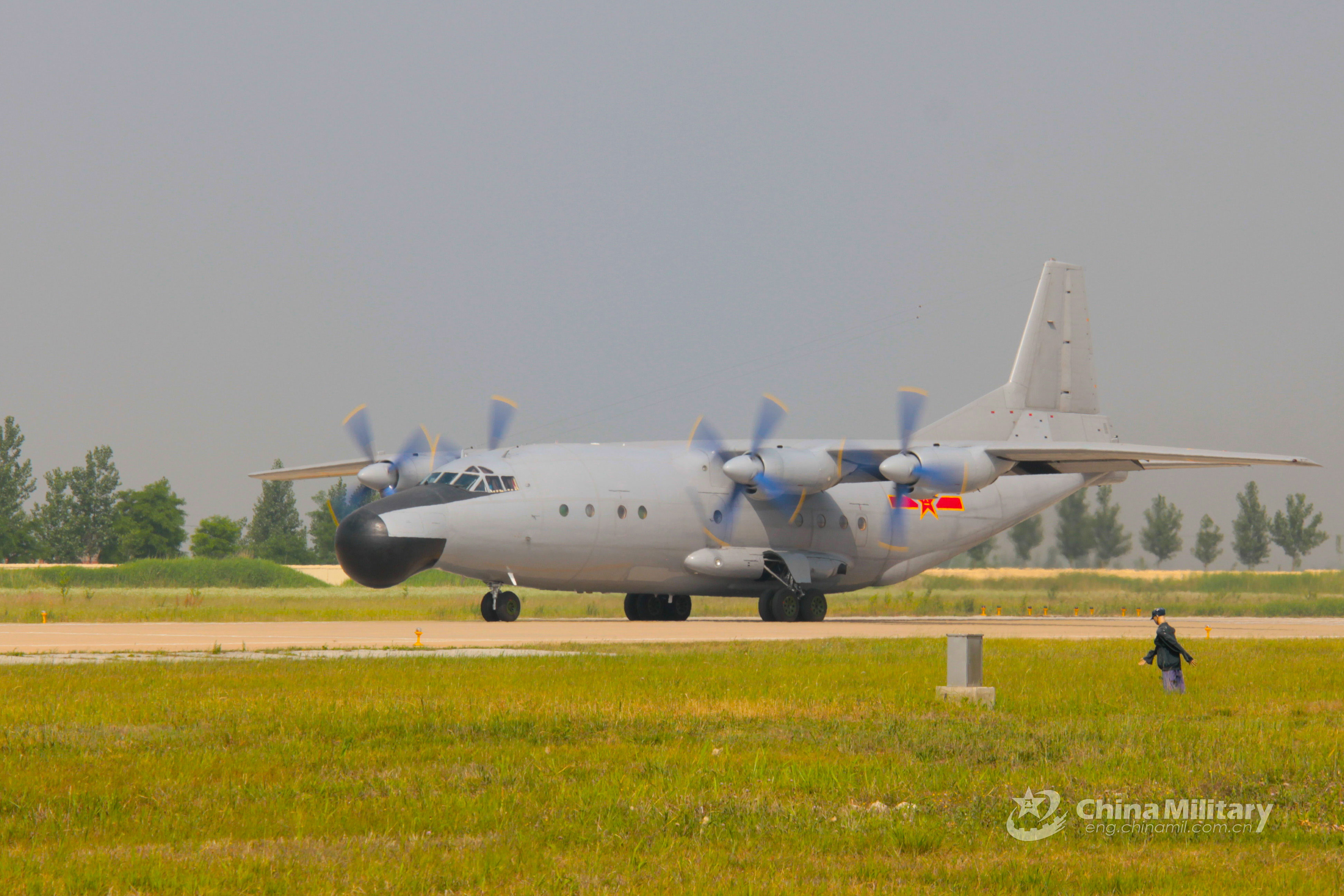 A Y-8 aircraft for special electronic warfare (EW) mission taxis on the runway before takeoff for a round-the-clock flight training exercise in late June, 2019. (eng.chinamil.com.cn/Photo by Xing Yun and Yan Menglong)