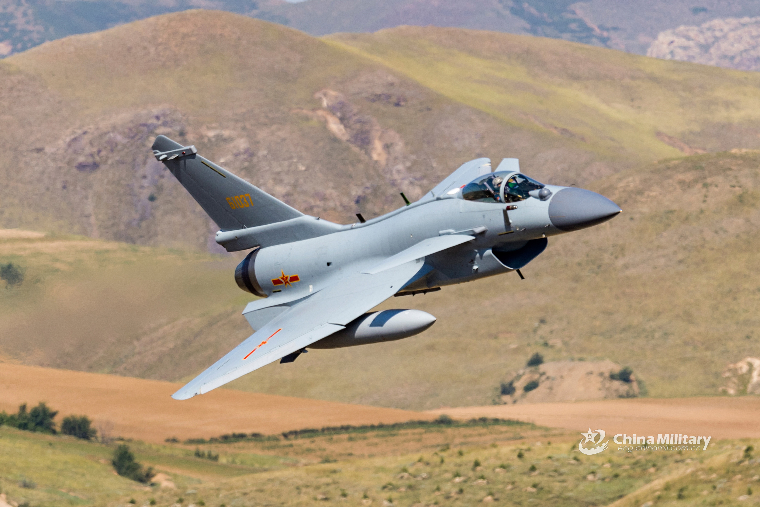 A J-10 fighter jet attached to an aviation brigade of the air force under the PLA Northern Theater Command flies through the valley during an aerial combat sortie from July 3 to 5, 2019. (eng.chinamil.com.cn/Photo by Yang Pan)