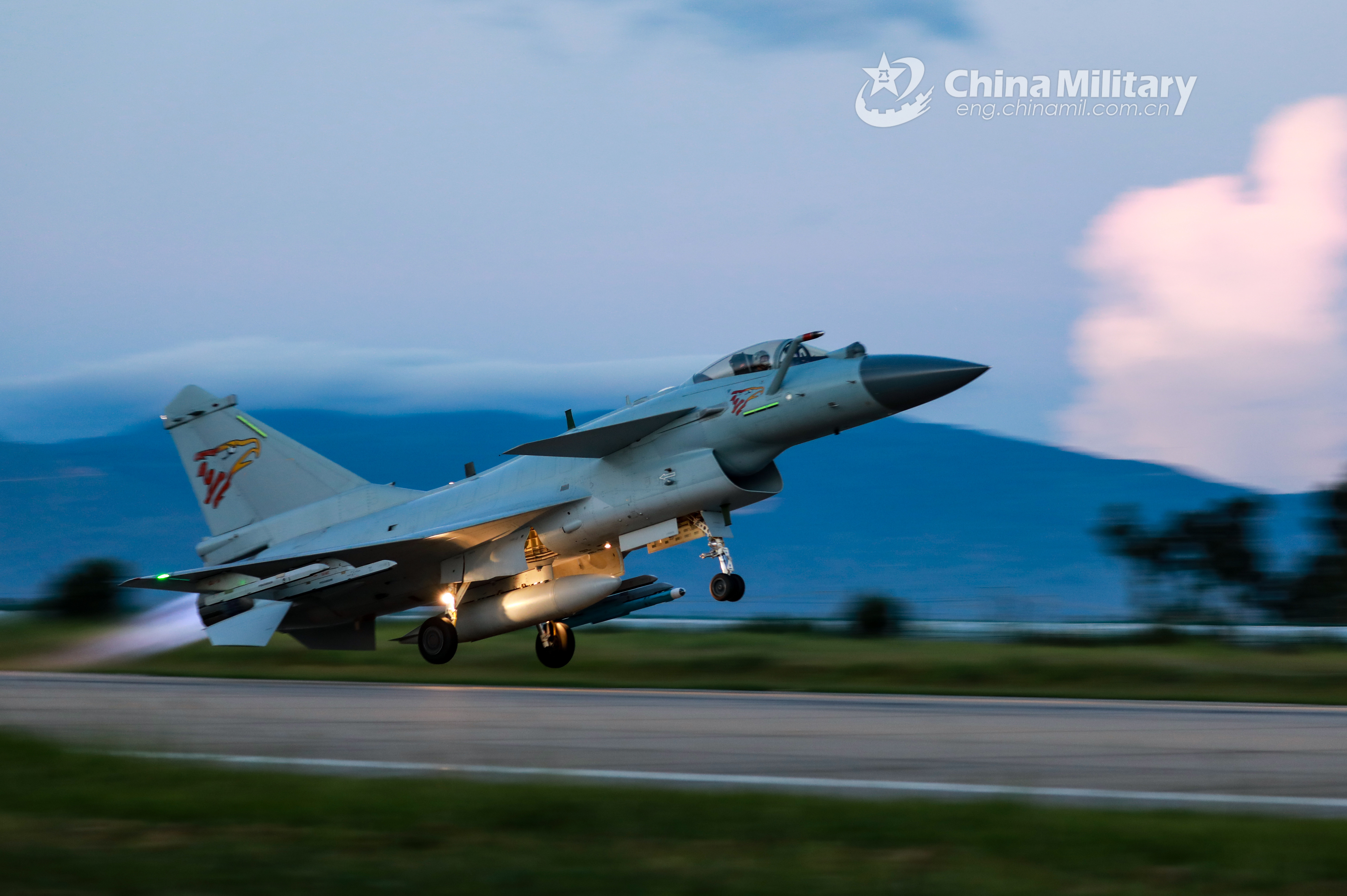 A J-10 fighter jet attached to an aviation brigade of the air force under the PLA Southern Theater Command takes off for a flight mission in early August, 2020. (eng.chinamil.com.cn/Photo by Wang Guoyun)