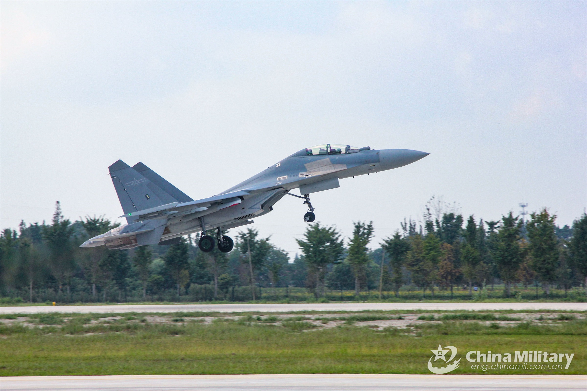 A fighter jet attached to an aviation brigade under the PLA Eastern Theater Command takes off from the runway and soars into the sky during a flight training exercise on September 12, 2022. (eng.chinamil.com.cn/Photo by Zhu Yunlong)