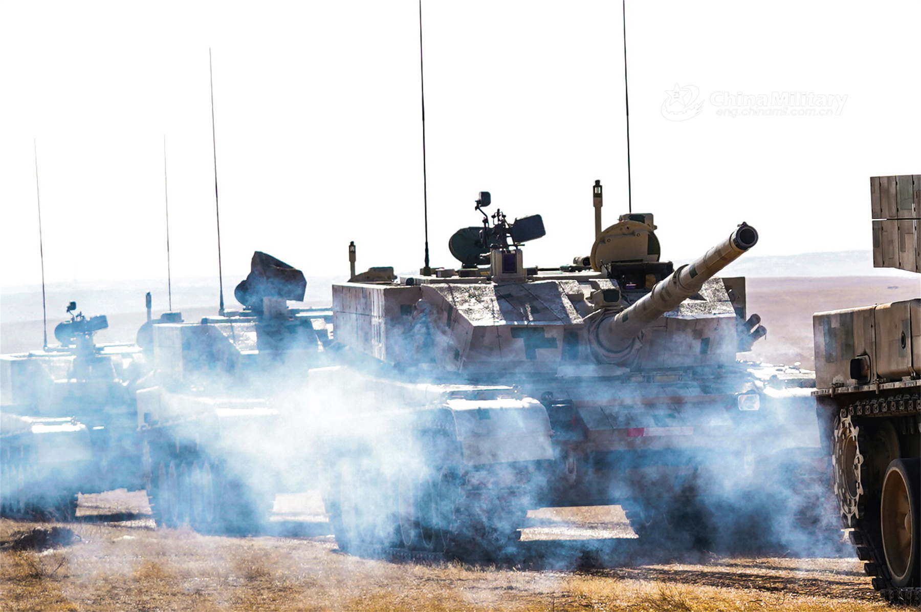A convoy of main battle tanks attached to a brigade under the PLA 81st Group Army maneuvers towards the designated area during a live-fire exercise in late November, 2023. (eng.chinamil.com.cn/Photo by Li Changxing)