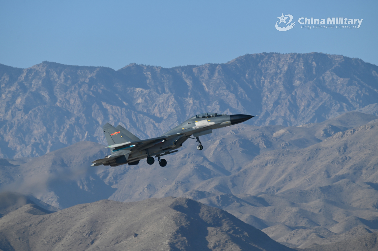 A fighter jet attached to an aviation brigade of the air force under the PLA Western Theater Command takes off for a flight training exercise on January 4, 2024. (eng.chinamil.com.cn/Photo by Yu Zeqi)