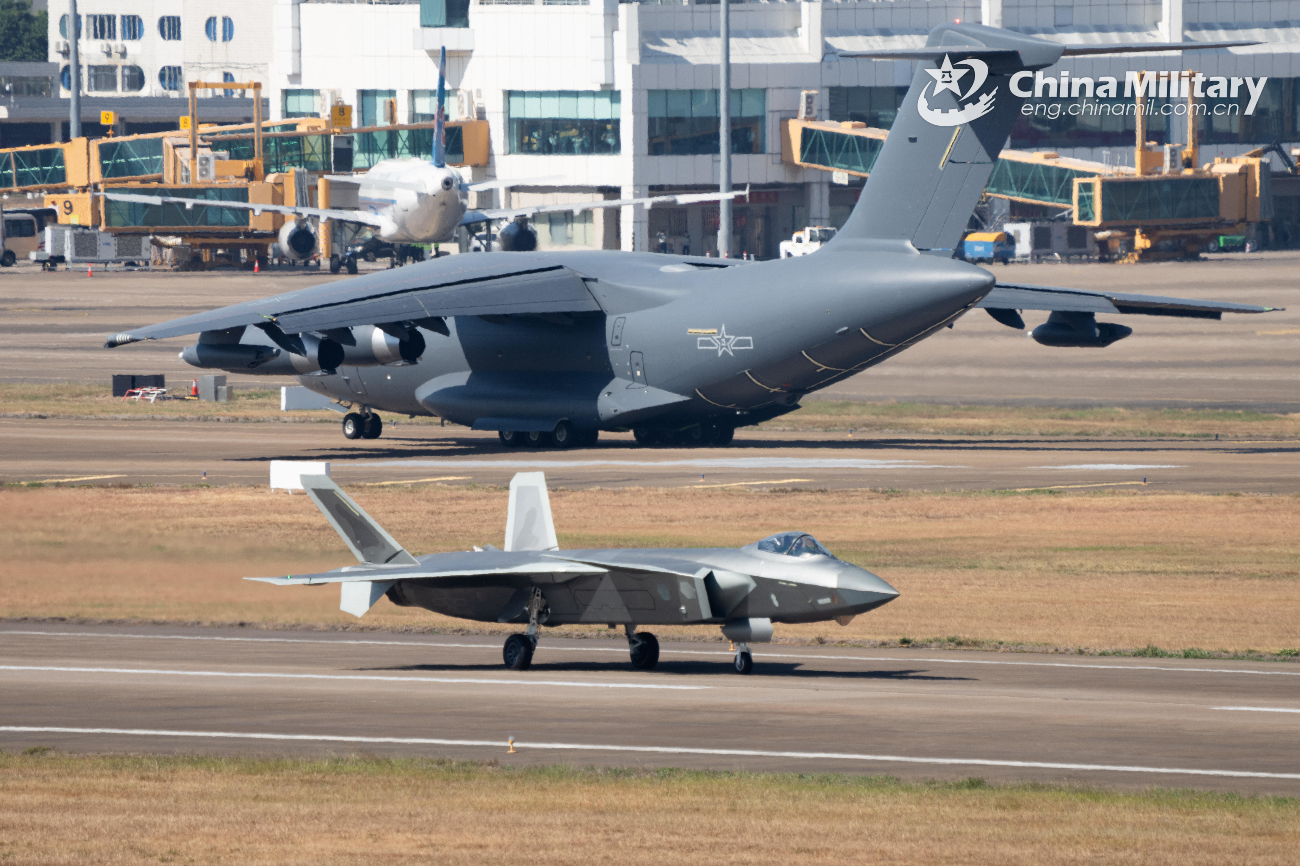 A YY-20 tanker aircraft and a J-20 stealth fighter jet conduct adaptive training on November 9, in preparation for the upcoming 15th China International Aviation and Aerospace Exhibition, Airshow China 2024, which is scheduled to be held from November 12th to 17th, 2024. (eng.chinamil.com.cn/Photo by Yang Pan)