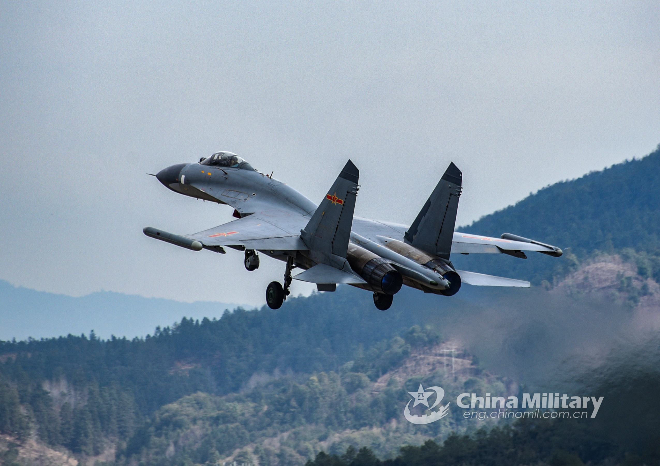A J-11 fighter jet attached to an aviation brigade of the air force under the PLA Eastern Theater Command takes off from a military airfield during the round-the-clock flight training on January 6, 2020. (eng.chinamil.com.cn/Photo by Fu Gan)