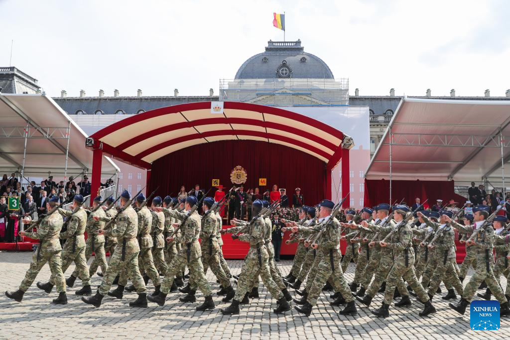 Military personnel march during a military and citizens' parade of Belgian National Day celebrations in Brussels, Belgium, on July 21, 2023. (Xinhua/Zheng Huansong)