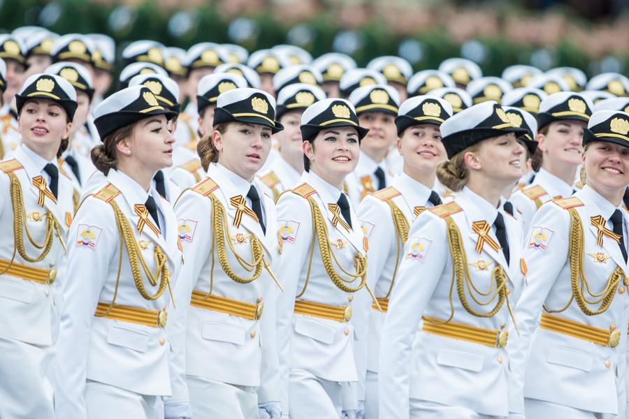 72nd Anniversary: Servicewomen march during the Victory Day military parade on Red Square in Moscow, Russia, May 9, 2017. (Xinhua/Wu Zhuang)