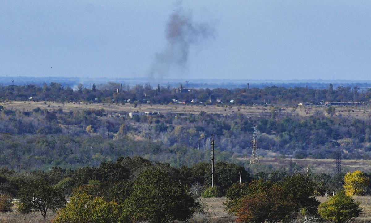 Smoke rises above the area of the frontline town of Avdiivka, Ukraine on October 18, 2023. Photo: AFP