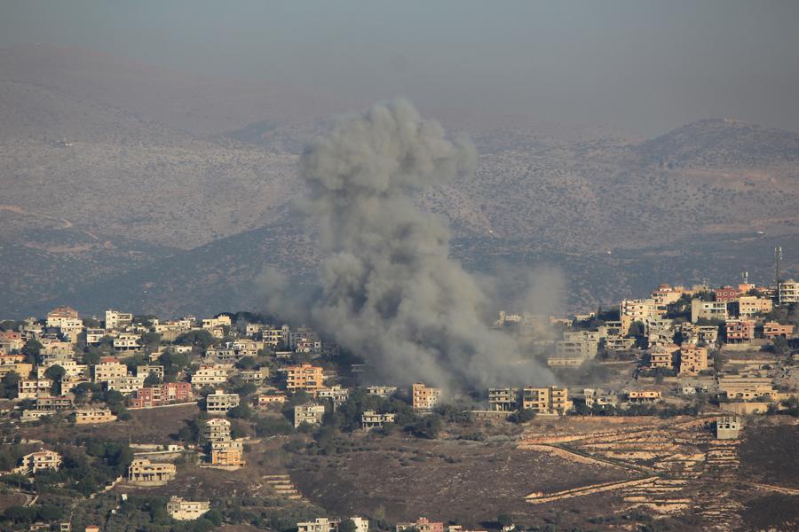 Smoke billows after Israeli airstrikes in the town of Adaisseh, Lebanon, Oct. 5, 2024. (Photo by Taher Abu Hamdan/Xinhua)