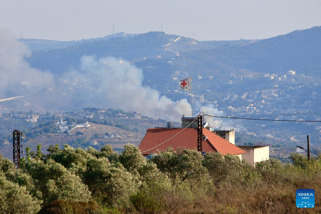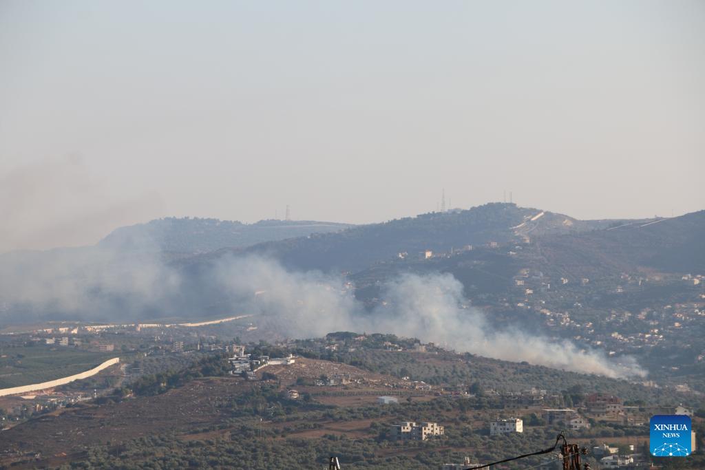 Smoke rises following an Israeli airstrike in Kafr Kila, Lebanon, on Aug. 6, 2024. Confrontations between Hezbollah and the Israeli army escalated following Israel's attack on Dahieh in Beirut's southern suburbs, killing Hezbollah senior military commander Fouad Shokor and seven civilians. (Photo by Taher Abu Hamdan/Xinhua)
