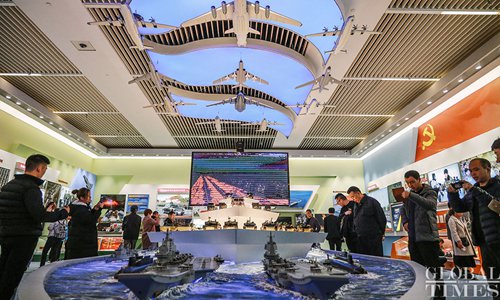 Visitors take pictures of the Chinese aircraft carriers on display. Photo: Li Hao/GT