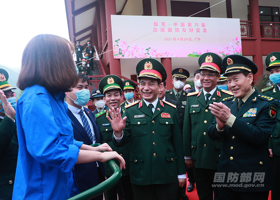 The picture shows the friendly exchange between two defense ministers and local people. (Photo by Li Xiaowei)