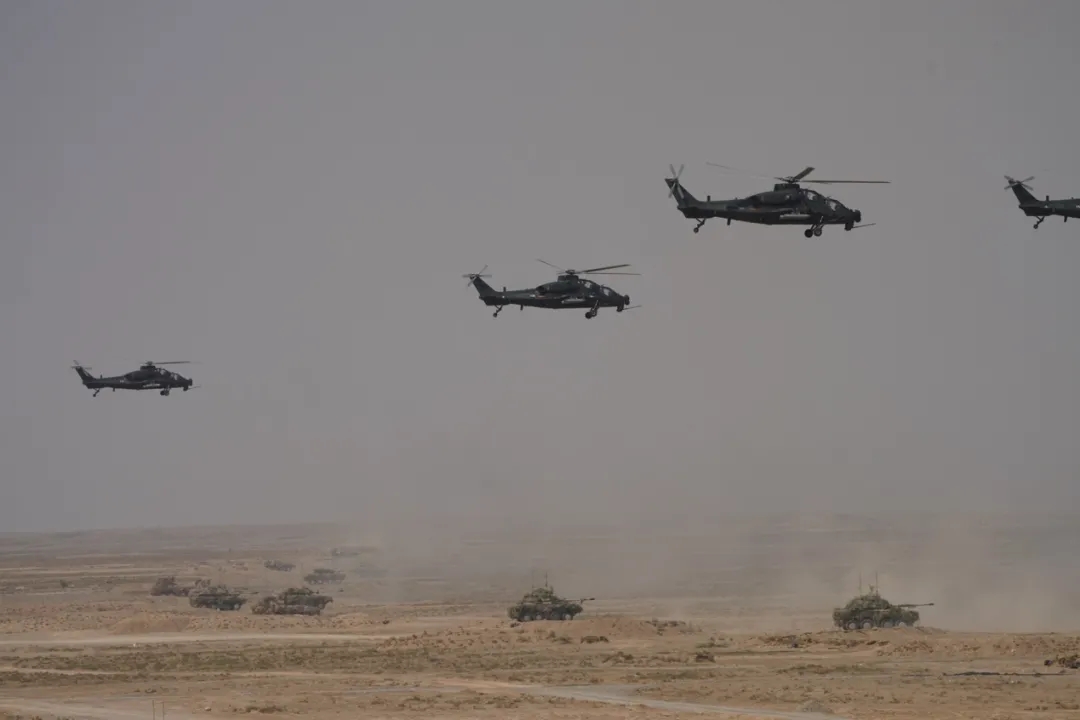 The second phase of live-fire drill in the China-Russia joint exercise ZAPAD/INTERACTION-2021 kicks off on the morning of August 13, 2021. The picture shows the military aircraft echelon and armored vehicles coordinate for all-round assault in the joint exercise. (eng.chinamil.com.cn/Photo by Wang Weidong)