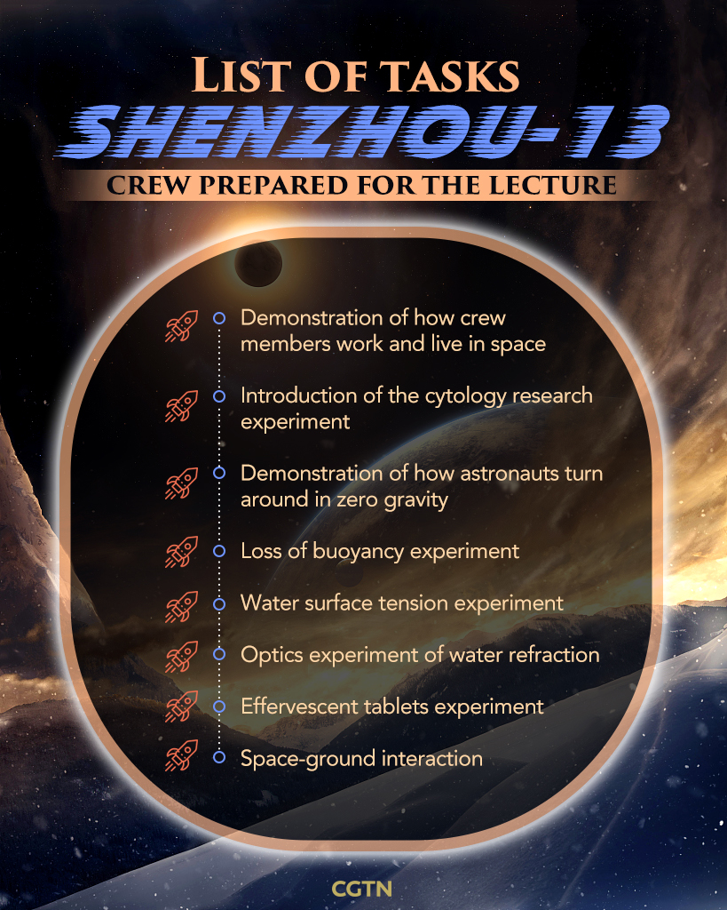 The crew aboard China's space station will give a live science lecture to viewers back on Earth at 3:40 p.m. Beijing Time on Thursday.