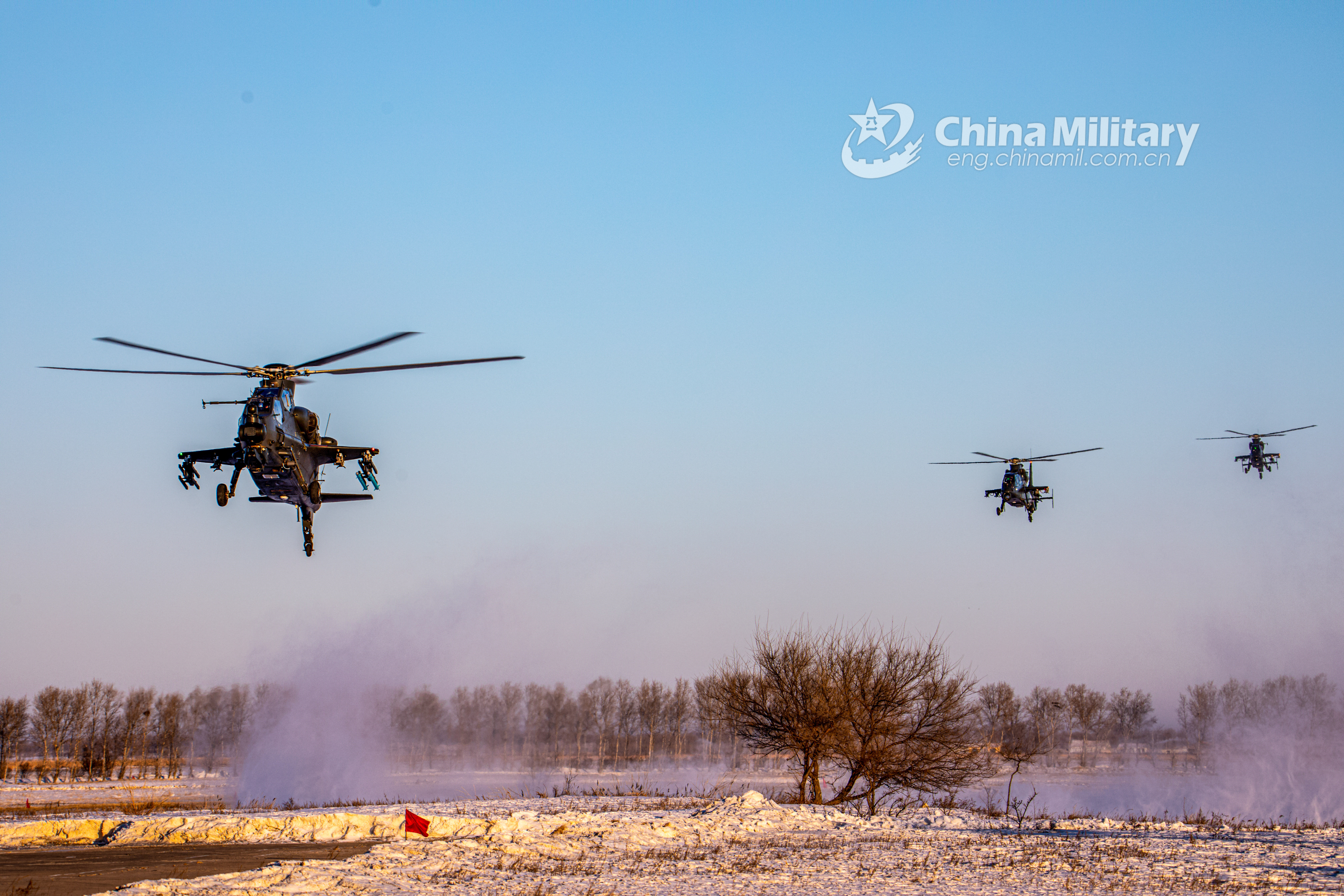 Group Army fly in formation to a designated airspace during a live-fire training exercise in early December, 2021. (eng.chinamil.com.cn/Photo by Li Peng)