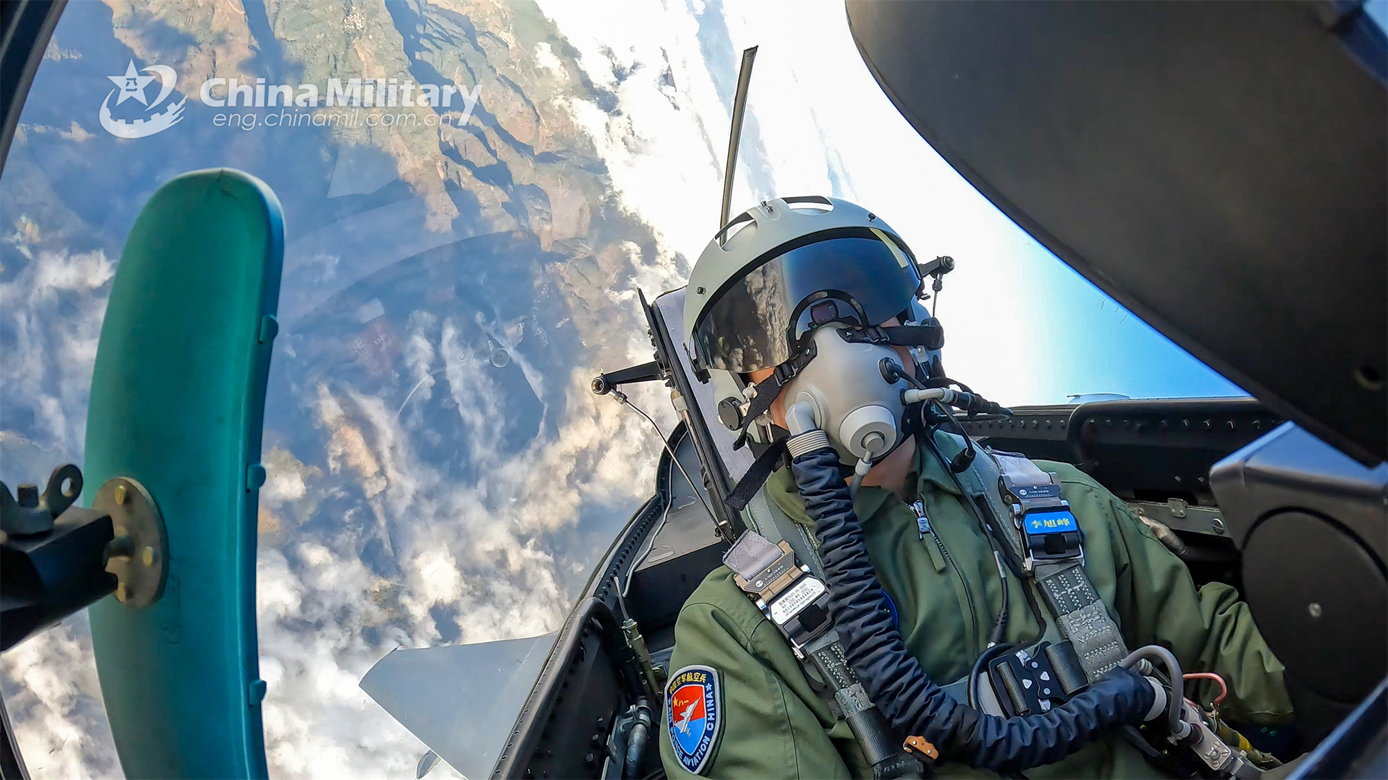 A pilot attached to an aviation brigade under the PLA Southern Theater Command flies his fighter jet during a flight training exercise on January 6, 2023. (eng.chinamil.com.cn/Photo by Wang Guoyun)