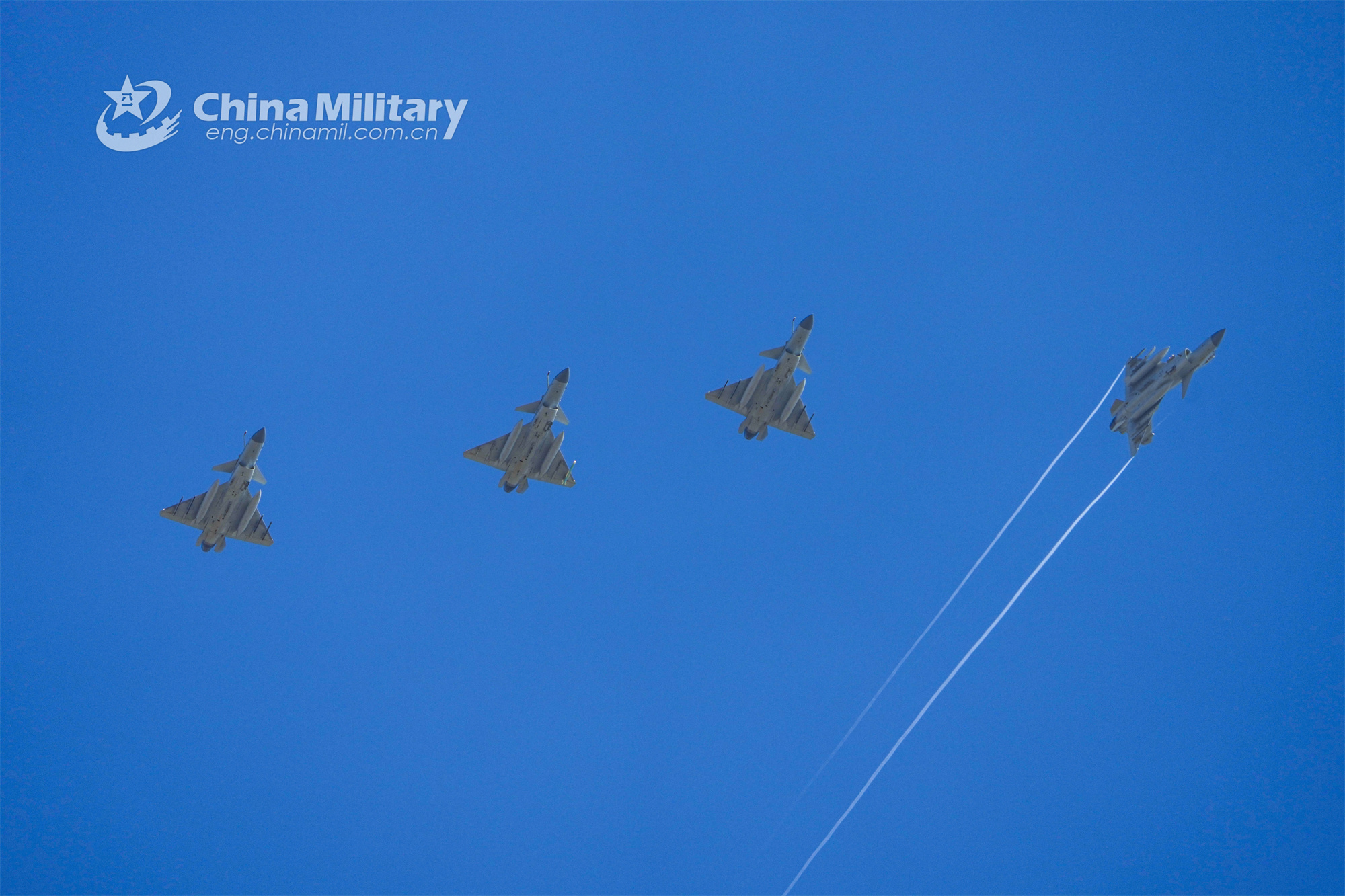 Fighter jets attached to an aviation brigade under the PLA Southern Theater Command fly in formation during a flight training exercise on January 6, 2023. (eng.chinamil.com.cn/Photo by Wang Guoyun)